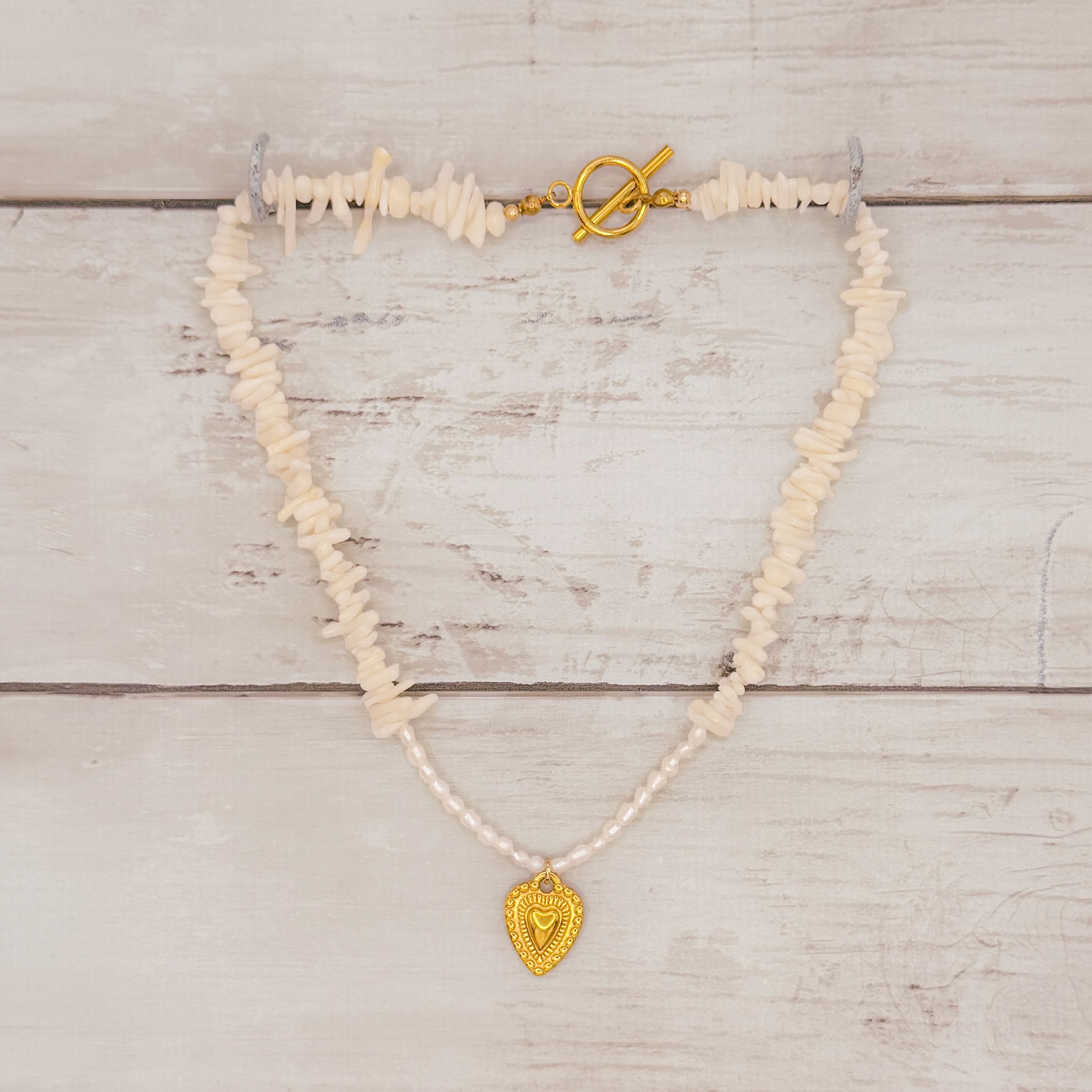 サンゴ×淡水パール×ハートチャームが
